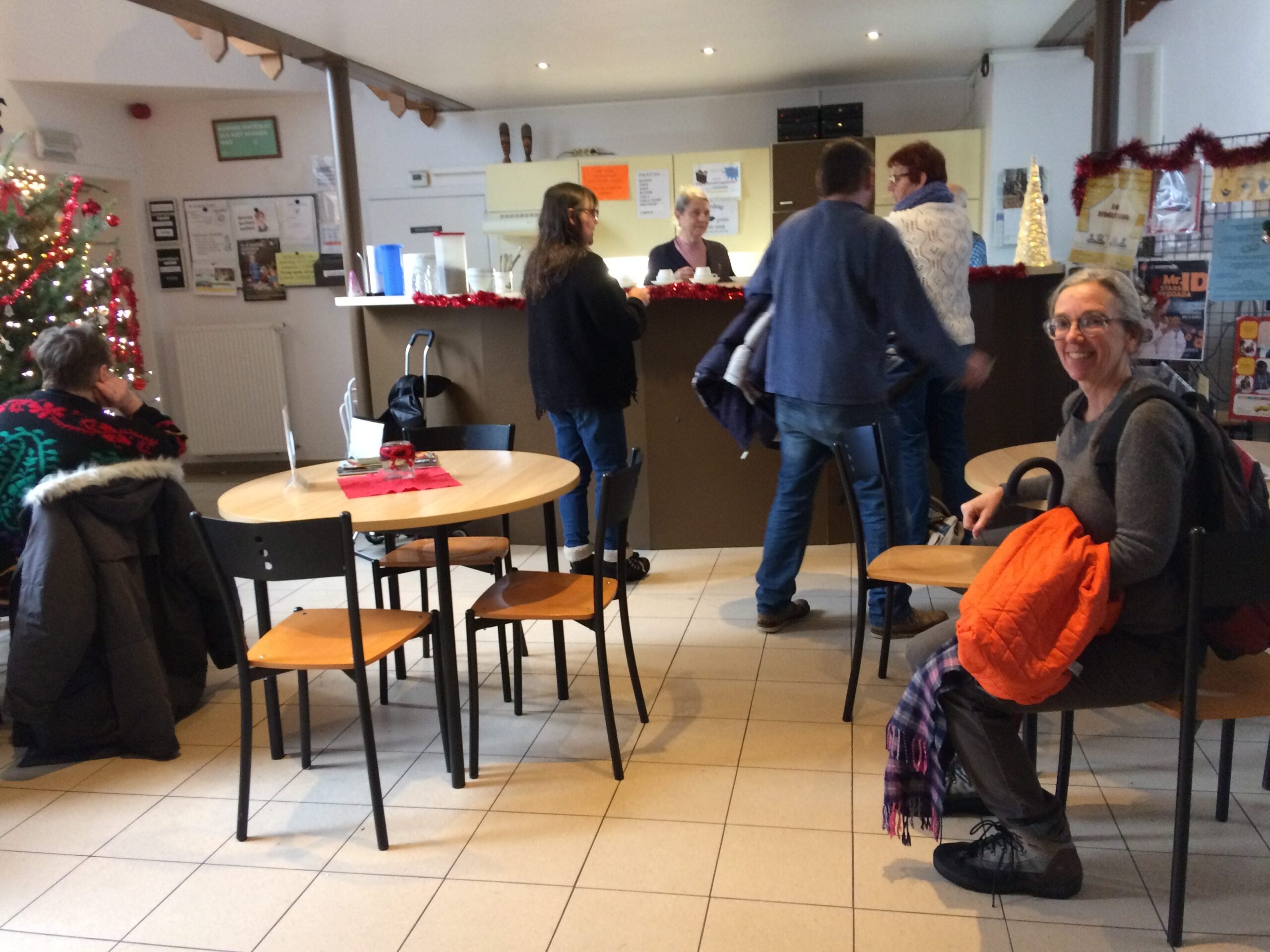 Three themes flowed from the interviews. The first is the use of material deprivation as a measure of need (does the person have housing, heat, food, transportation?), as opposed to using only income, the common criteria used in the United States. Non-profits and government agencies alike were concerned with the individuals’ actual living conditions rather than fixed level of income. This allows for individual and community based circumstances to be taken into account. In some of the food pantries, before receiving food, clients are invited to sit down and have a cup of coffee and talk about how things are going as a way to better understand underlying issues that lead to the need for food aid, as in these photos from a visit to a ‘social cafe’ and pantry. In the past year, conversations revealed that a number of clients were unable to take showers as they wished because their housing did not have hot water. The pantry has since added hot shower facilities and the issue of housing standards has been elevated to authorities.