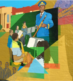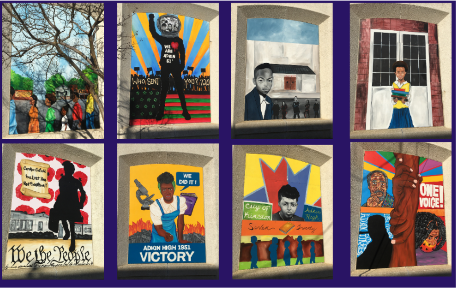For both of these murals, the Committee selected local, African American artists with experience representing black figures and engaging the community in their art. In the case of the artists who worked on the Adkin High School Walkout, the Committee connected them to the Adkin High Alumni Association and facilitated several conversations to tell the story of the walkout and offer feedback on the design from the community members closest to the event.