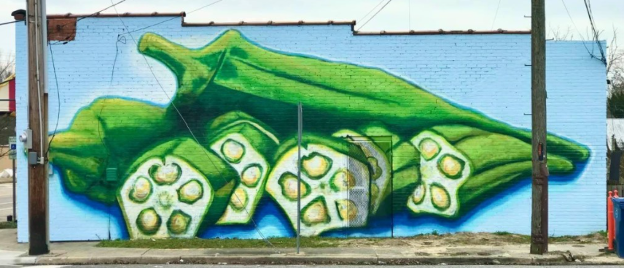 Once the artists were under contract, the Selection Committee scheduled meetings to develop the concepts. The concept development process was highly dependent on the artist’s style and experience; for example, muralist Maxx Moses’ style is improvisational—the Selection Committee asked for a general design, but then worked with the wall owner and Maxx to ensure the artist would have freedom to adapt his concept once he got to the wall. Another artist, Seraphim Smith, was selected specifically for his photo submissions of food—the Selection Committee wanted him to create a large-scale food mural, but gave him freedom to propose any type, color, or design he wanted.