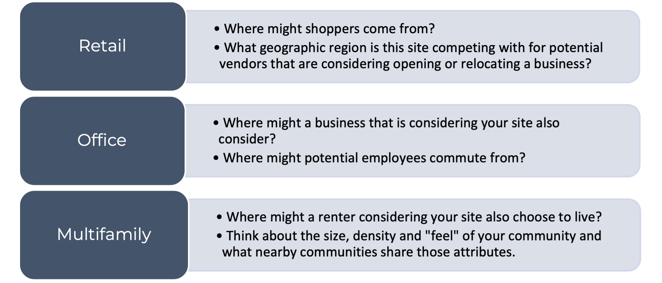 Figure 1: Guiding Questions to Determine Retail Trade and Office/Multifamily Market Areas